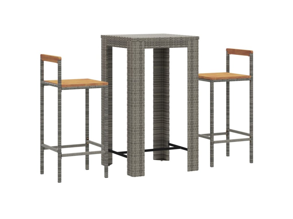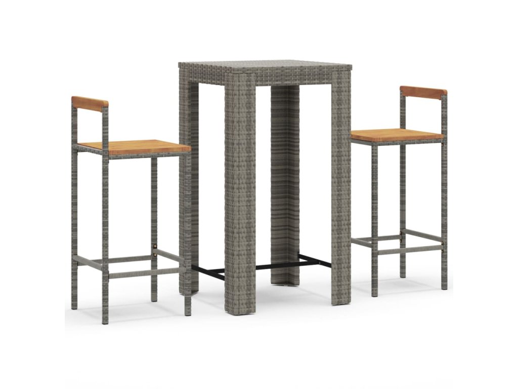 3dílný zahradní barový set šedý polyratan a masivní akácie 3187711