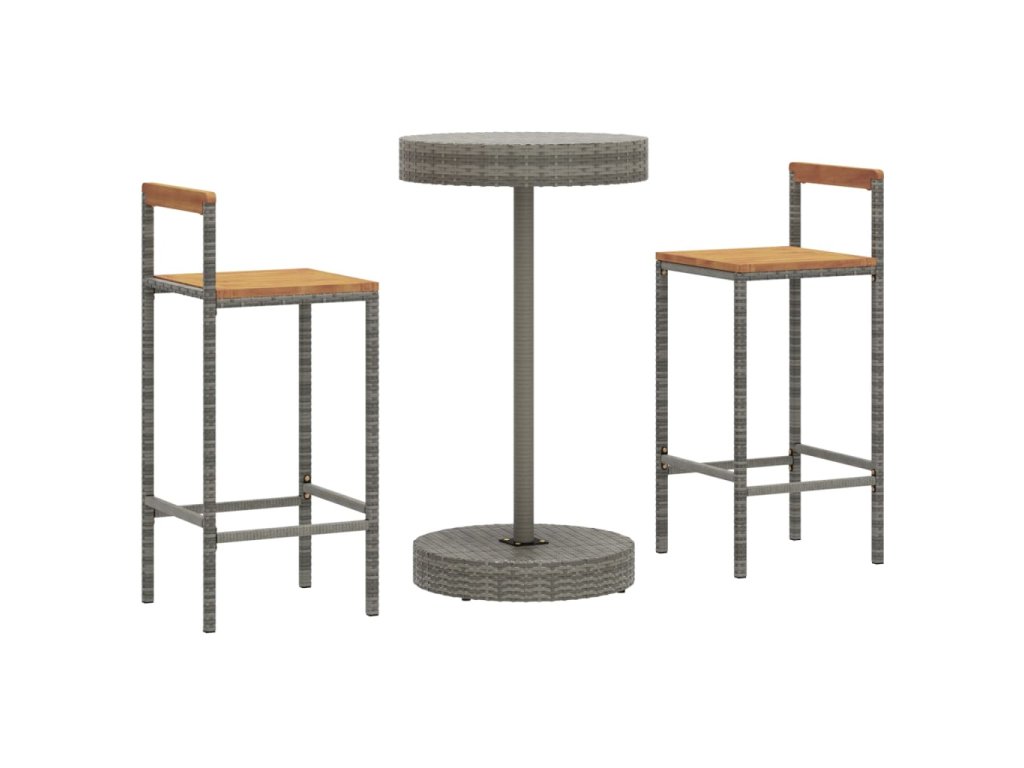 3dílný zahradní barový set šedý polyratan a masivní akácie 3187719