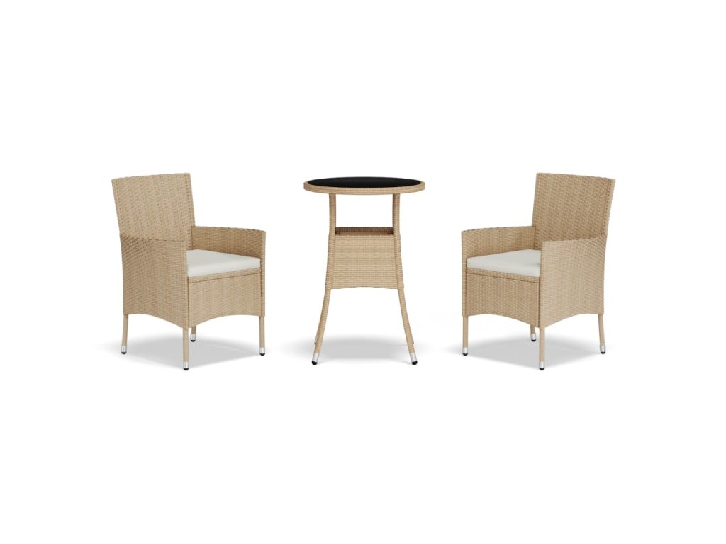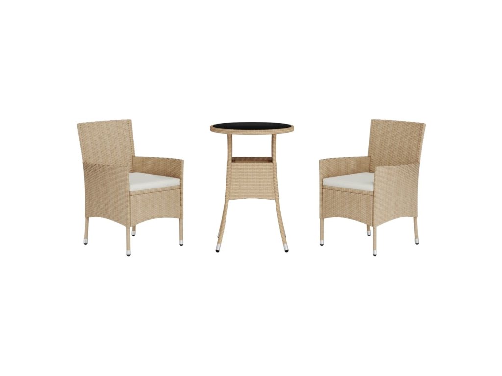 3dílný zahradní bistro set s poduškami béžový polyratan 3187420