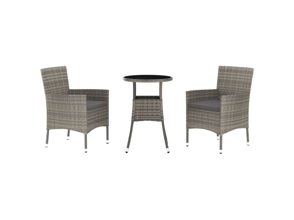 3dílný zahradní bistro set s poduškami šedý polyratan 3187418