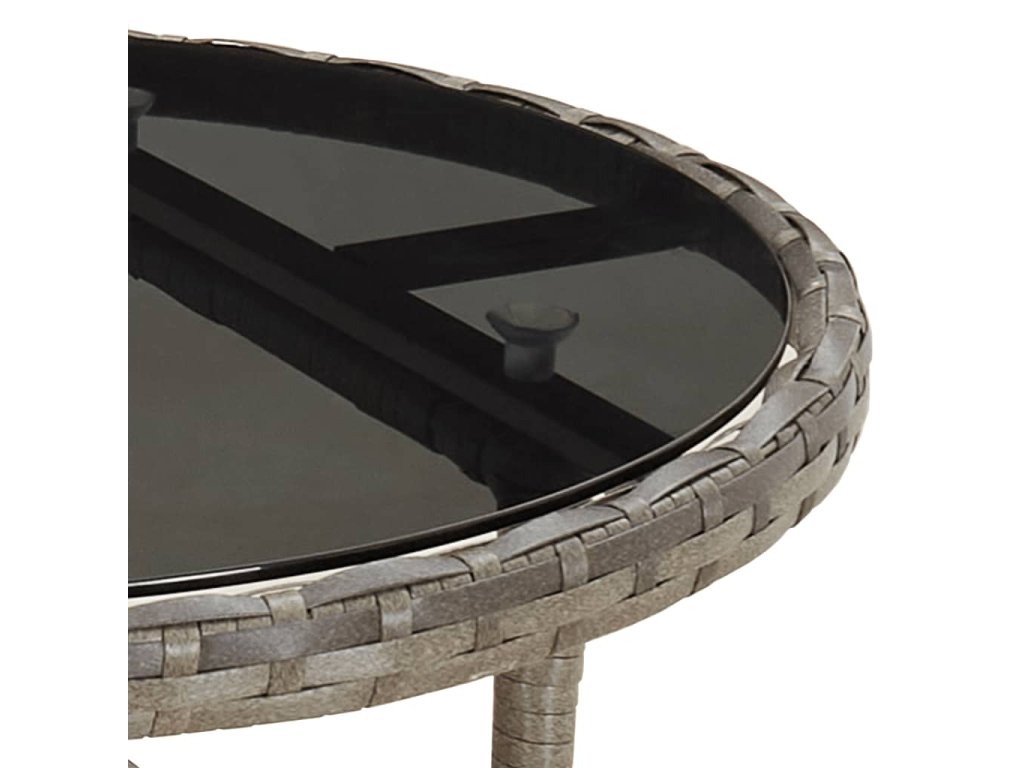- Materiál: polyratan, práškově lakovaná ocel, tvrzené sklo