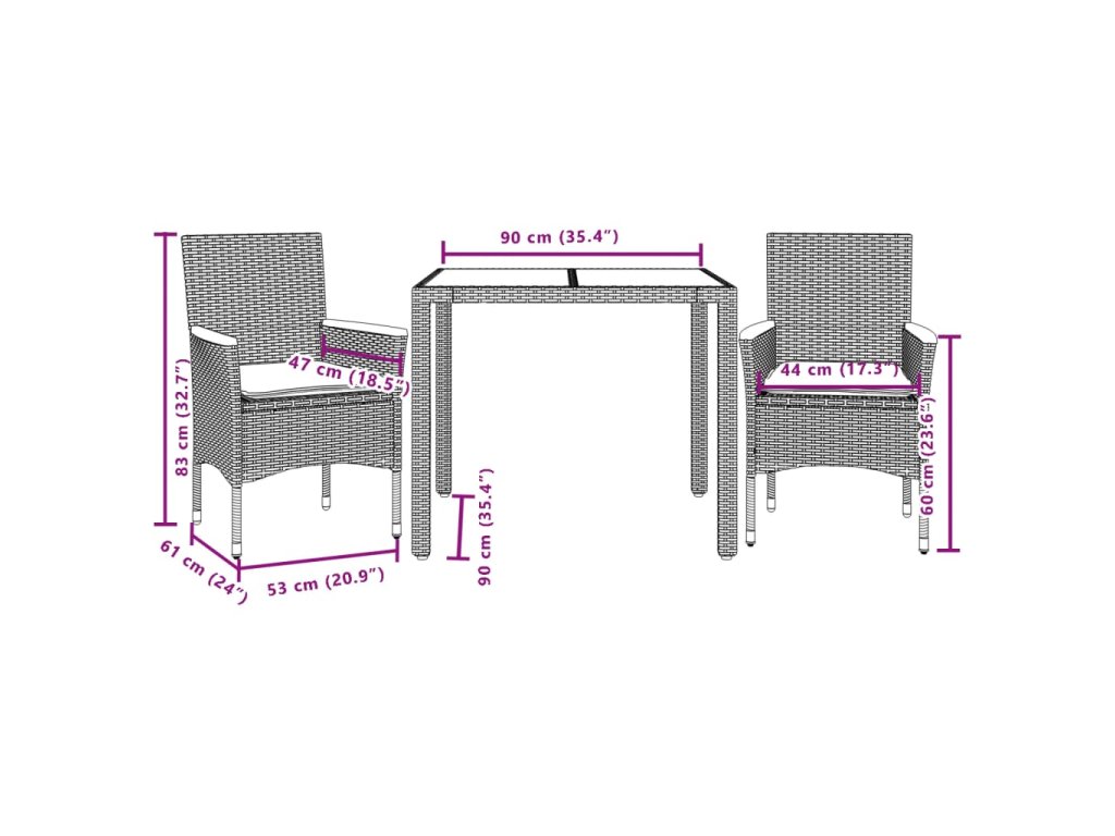 3dílný zahradní jídelní set a podušky béžový polyratan a akácie 3278639