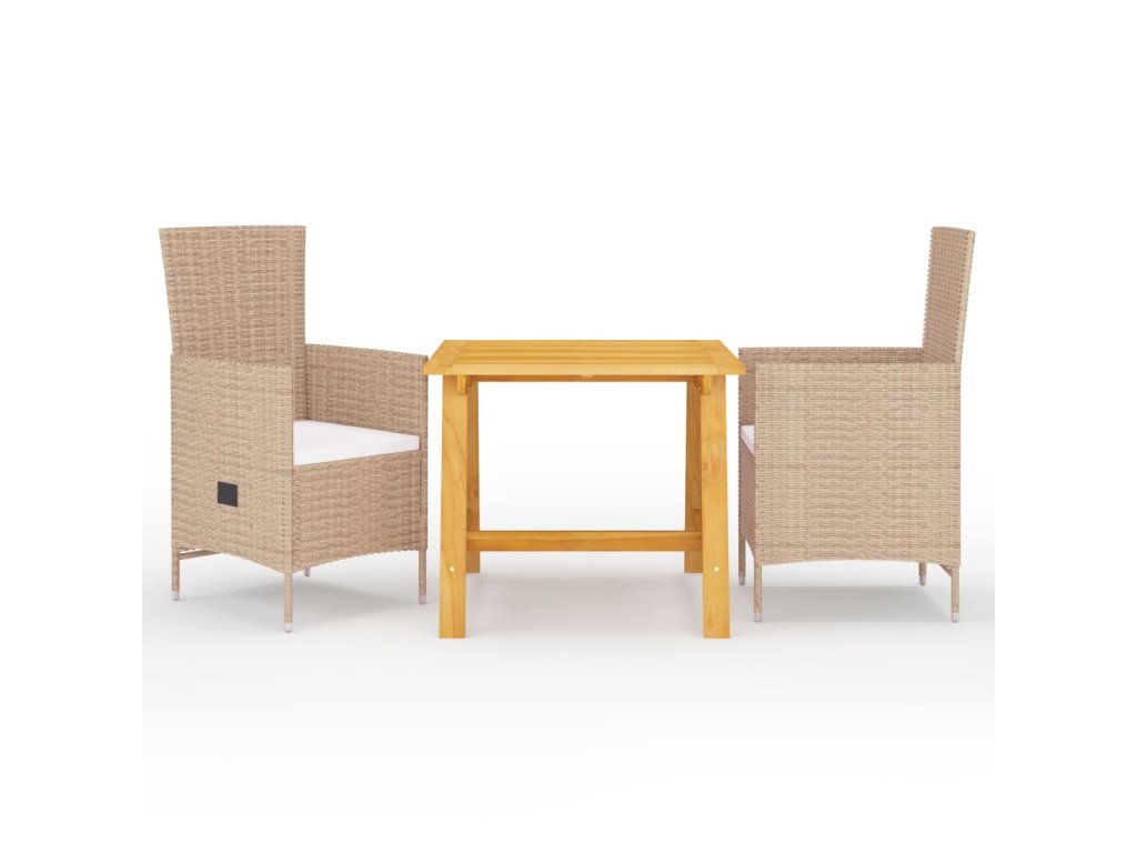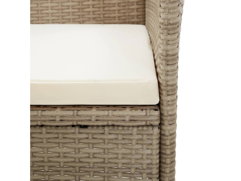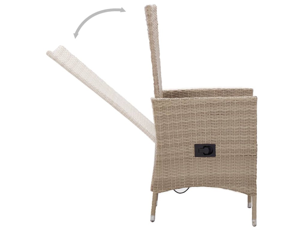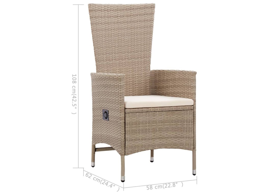 Jídelní stůl je zhotovený z masivního akáciového dřeva s olejovaným povrchem, takže je stabilní, odolný a nenáročný na údržbu. Jídelní židle mají rám z práškově lakované oceli, opletený PE ratanem, který výborně vzdoruje klimatickým vlivům. Jsou tudíž bytelné a snadno se čistí. Polohovatelné židle vám nabídnou veškeré pohodlí, jaké si jen můžete přát. Opěradlo lze sklopit zatažením za tlačítko na boku. Židle mají lehkou konstrukci, není tedy problém je přesunout, kam potřebujete. Navíc jsou opatřené mimořádně pohodlnými, hustě polstrovanými poduškami na sedák pro maximální komfort. Jejich polyesterové potahy nevyžadují téměř žádnou údržbu a dají se stáhnout a oprat.