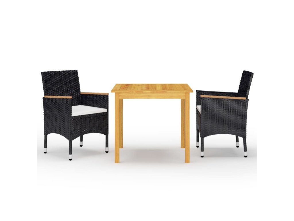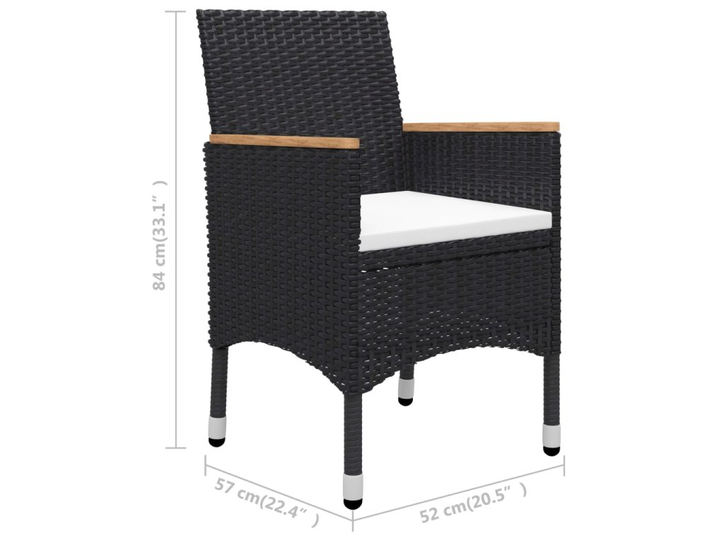 Jídelní stůl je zhotovený z masivního akáciového dřeva s olejovaným povrchem, takže je stabilní, odolný a nenáročný na údržbu. Jídelní židle mají rám z práškově lakované oceli, opletený klimaticky odolným PE ratanem, jsou tudíž odolné a snadno se čistí. Zahradní židle mají zaoblená opěradla a područky, což přispívá k většímu pohodlí, stejně jako jejich ergonomický tvar. Područky jsou navíc nádherně zdobené masivním akáciovým dřevem s přírodní povrchovou úpravou, které jim dodává rustikální šarm. Hustě polstrované podušky vám při sezení zaručí mimořádný komfort.