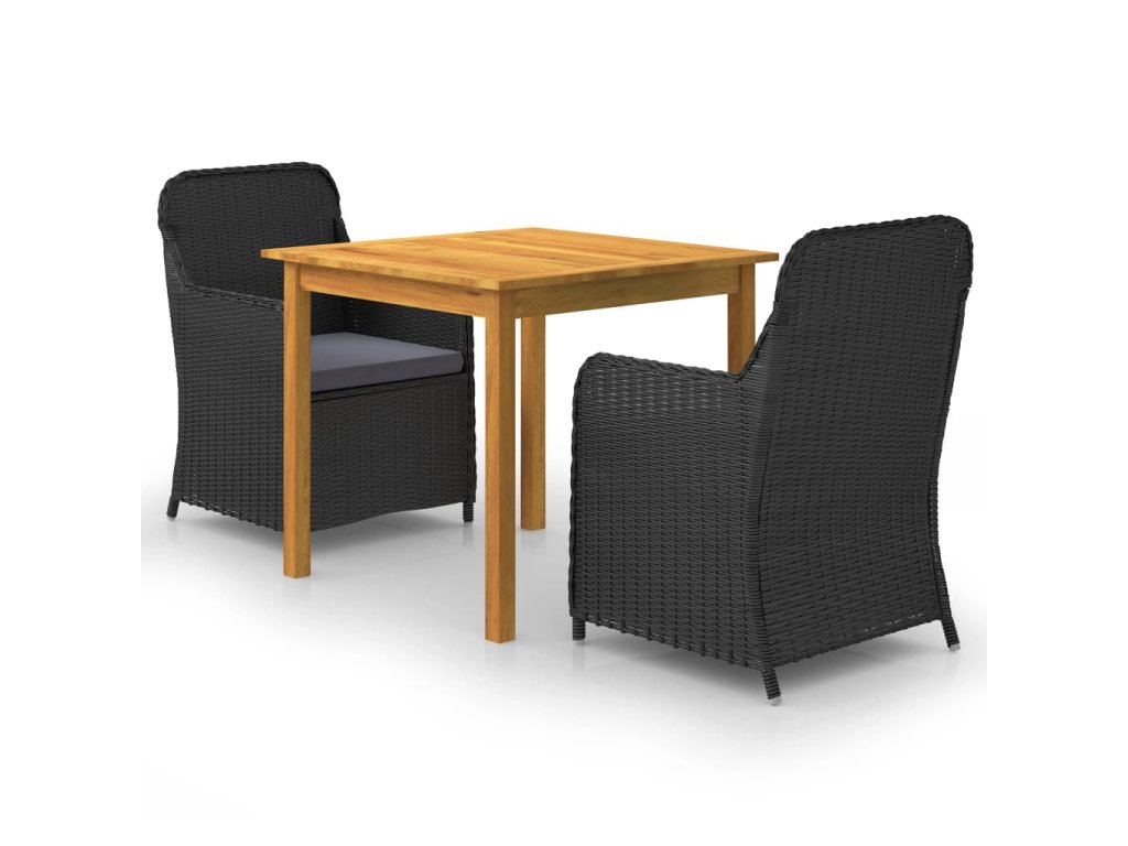 Jídelní stůl je zhotovený z masivního akáciového dřeva s olejovaným povrchem, takže je stabilní, odolný a nenáročný na údržbu. Jídelní židle mají rám z práškově lakované oceli, opletený PE ratanem, který výborně vzdoruje klimatickým vlivům. Dlouho vám proto vydrží a snadno je očistíte. Ergonomický tvar spolu s hustě polstrovanými poduškami vám při sezení zaručí maximální pohodlí. Polyesterové potahy podušek nevyžadují téměř žádnou údržbu a dají se jednoduše stáhnout a oprat.