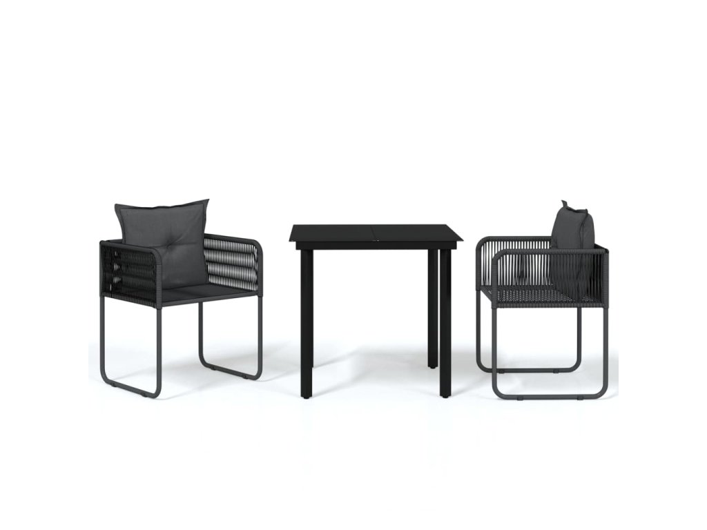 Zahradní jídelní set má práškově lakovaný ocelový rám, takže je robustní a stabilní a ideální pro venkovní použití. Hladká skleněná deska stolu se snadno čistí vlhkým hadříkem a skvěle vám poslouží k podávání jídla a pití nebo k vystavení různých dekorativních předmětů. Židle jsou vyrobené z PE ratanu, jsou proto lehké a voděodolné. Polštáře za záda vám navíc při sezení zajistí maximální pohodlí, a zpříjemní vám tak váš odpočinek.