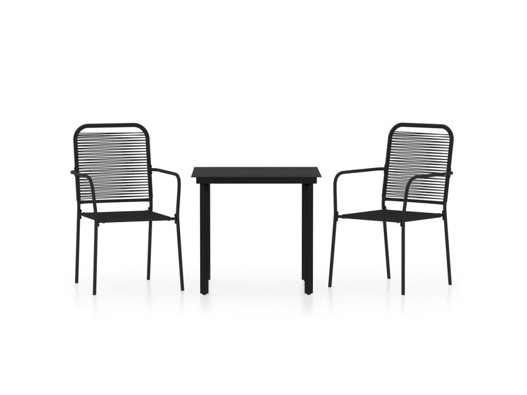 Tato zahradní jídelní souprava má ocelový rám s práškovým nástřikem, což dodává stolu a židlím na stabilitě a odolnosti. Opěradlo a sedák jsou vyrobeny ze spleteného bavlněného lanka, které je měkké na dotek a pevné pro dlouhodobé používání. Stůl má desku z tvrzeného skla, která se snadno čistí vlhkým hadříkem a je ideální pro servírování jídel a nápojů či vystavení různých dekorativních předmětů.