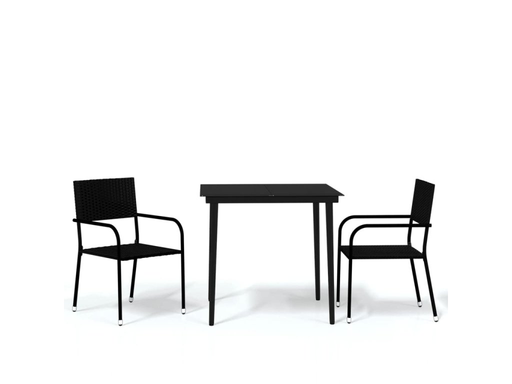 Praktická zahradní jídelní sestava má ocelový rám, takže je pevná a odolná. Zahradní židle jsou vyrobené z voděodolného PE ratanu, jsou tedy nenáročné na údržbu a ideální pro venkovní použití. Venkovní židle jsou navíc lehké a lze je stohovat, abyste ušetřili místo, když se právě nepoužívají. Hladká skleněná stolní deska se snadno čistí vlhkým hadříkem a skvěle se hodí k servírování jídel a nápojů či vystavení různých dekorativních předmětů.