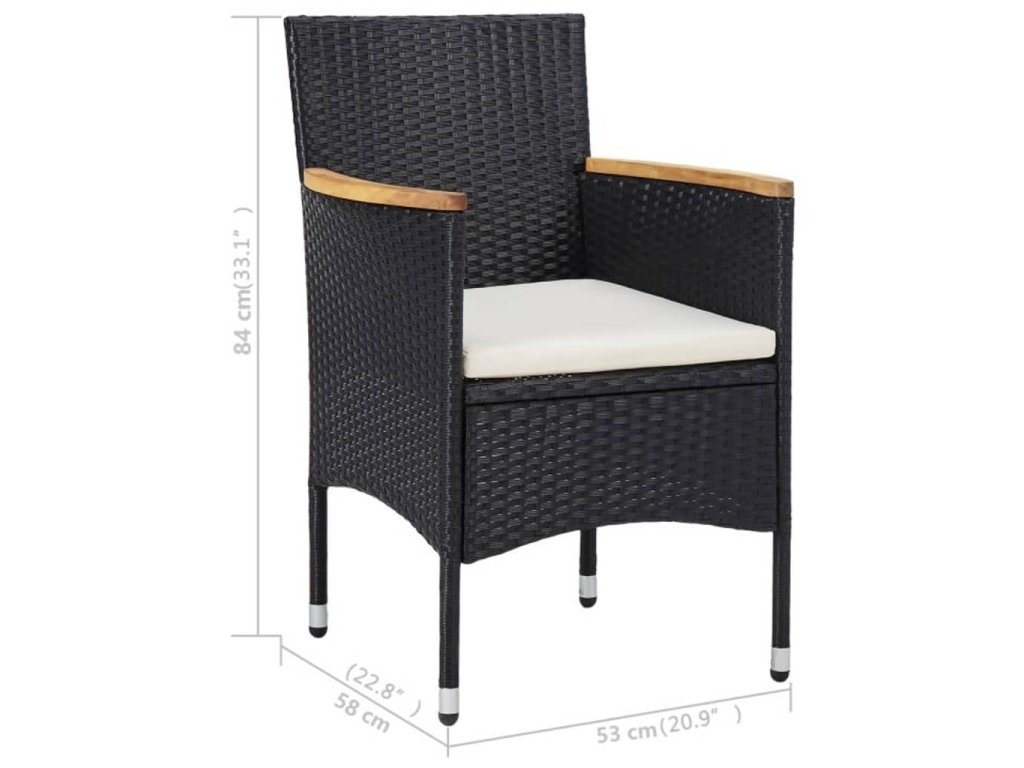 3dílný zahradní jídelní set černý polyratan a akáciové dřevo 3058312