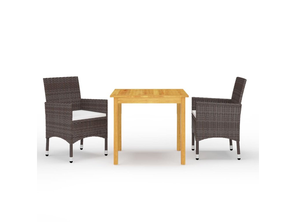 Jídelní stůl je zhotovený z masivního akáciového dřeva s olejovaným povrchem, takže je stabilní, odolný a nenáročný na údržbu. Jídelní židle mají rám z práškově lakované oceli, opletený klimaticky odolným PE ratanem, jsou tudíž odolné a snadno se čistí. Zahradní židle mají zaoblená opěradla a područky, což přispívá k většímu pohodlí, stejně jako jejich ergonomický tvar. Každé křeslo je opatřené odnímatelnou, hustě polstrovanou poduškou, která vám při odpočinku zaručí mimořádný komfort.
