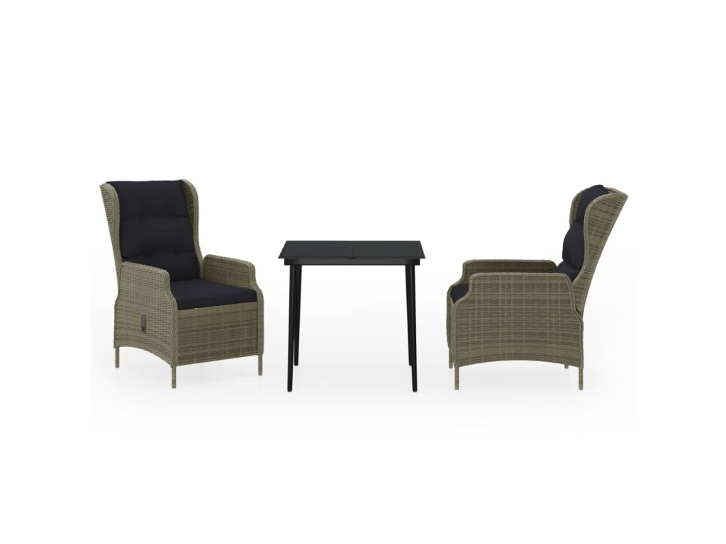 Praktický zahradní jídelní set má ocelový rám, takže je pevný a má dlouhou životnost. Polohovací židle jsou vyrobené z voděodolného PE ratanu, který nevyžaduje žádnou údržbu, hodí se proto skvěle k venkovnímu použití. Hustě polstrované podušky vám při stolování poskytnou maximální pohodlí. Potah podušky je opatřený zipem, lze ho tedy stáhnout a vyprat. Pomocí mechanismu s plynovým pístem si navíc snadno přizpůsobíte opěradlo křesla podle vlastních potřeb. Stisknutím tlačítka na boku ho sklopíte do té nejpohodlnější pozice. Hladká skleněná stolní deska, kterou jednoduše očistíte vlhkým hadříkem, je ideální k podávání jídla a pití nebo k vystavování různých dekorativních předmětů.