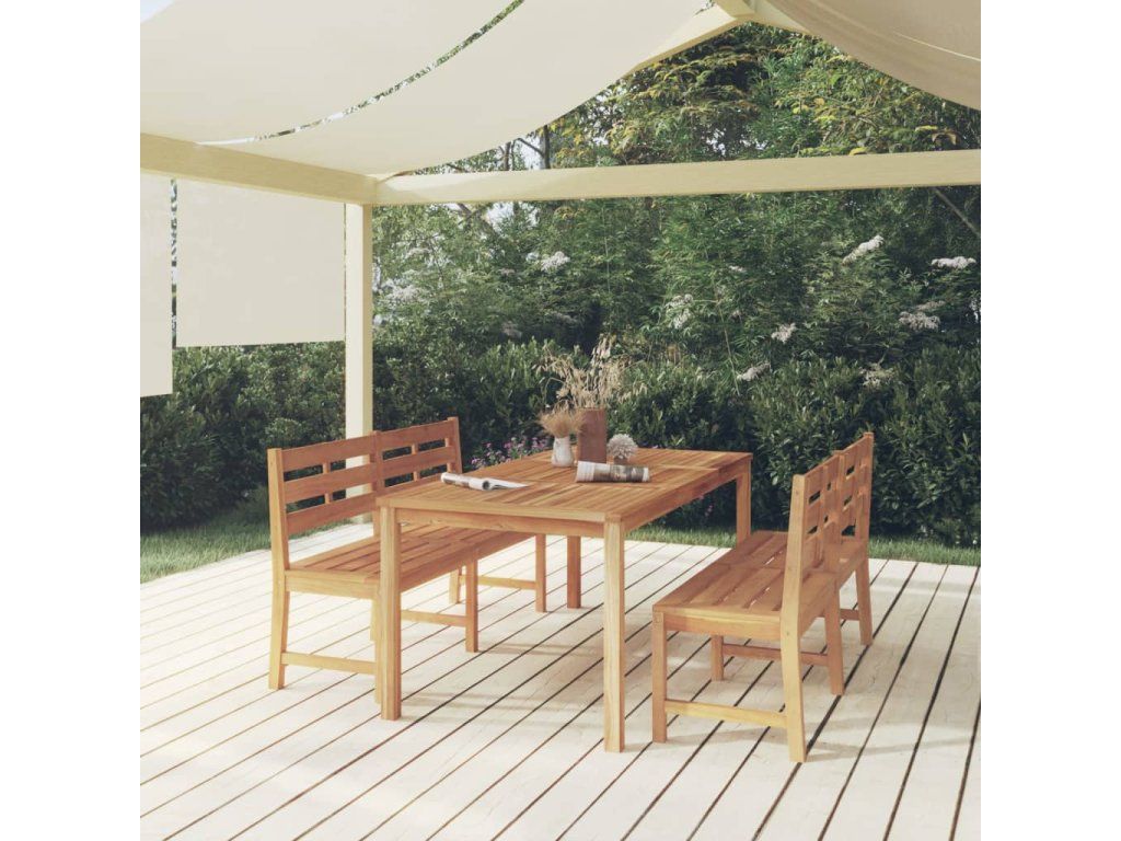 Tento dřevěný zahradní jídelní set s elegantním a moderním designem představuje skvělou volbu pro stolování nebo relaxaci na zahradě.