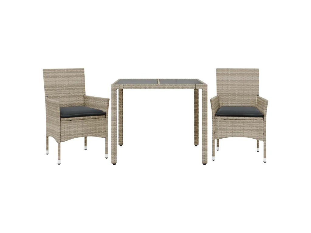 3dílný zahradní jídelní set podušky světle šedý polyratan sklo 3278573