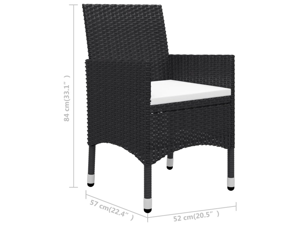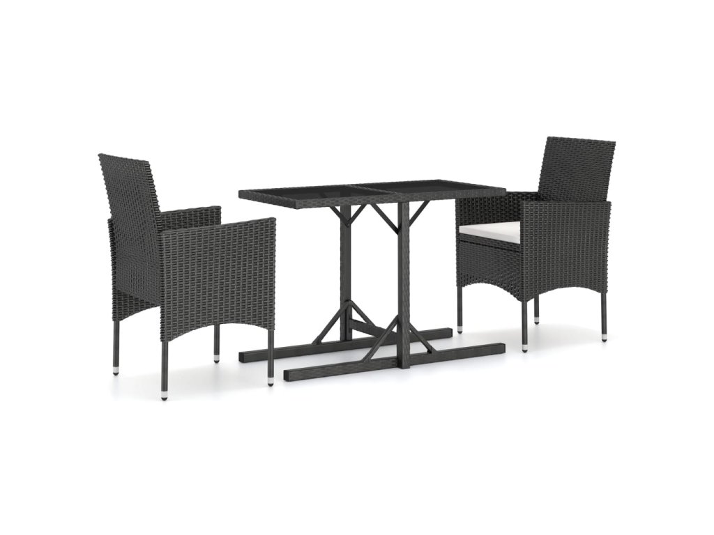3dílný zahradní jídelní set polyratan a tvrzené sklo černý 3095930