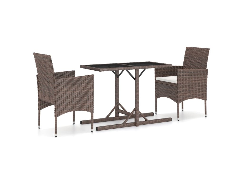 3dílný zahradní jídelní set polyratan a tvrzené sklo hnědý 3095931