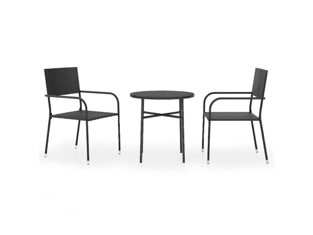 3dílný zahradní jídelní set polyratan černý 3098033