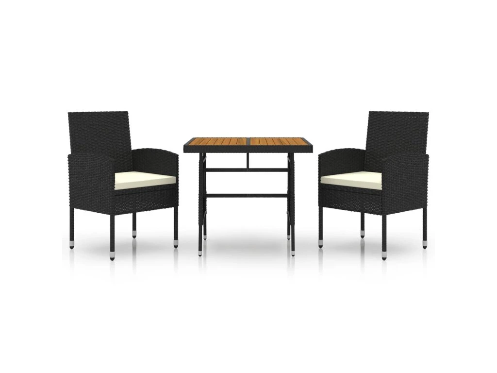 3dílný zahradní jídelní set polyratan černý 3120088