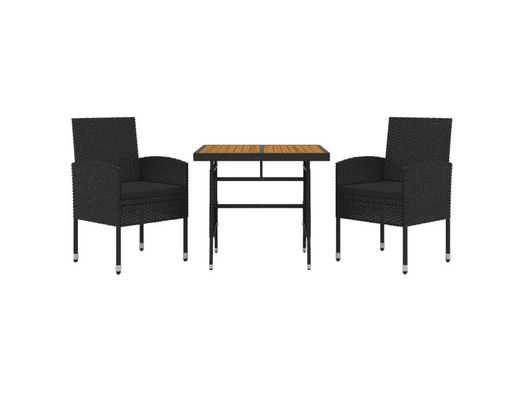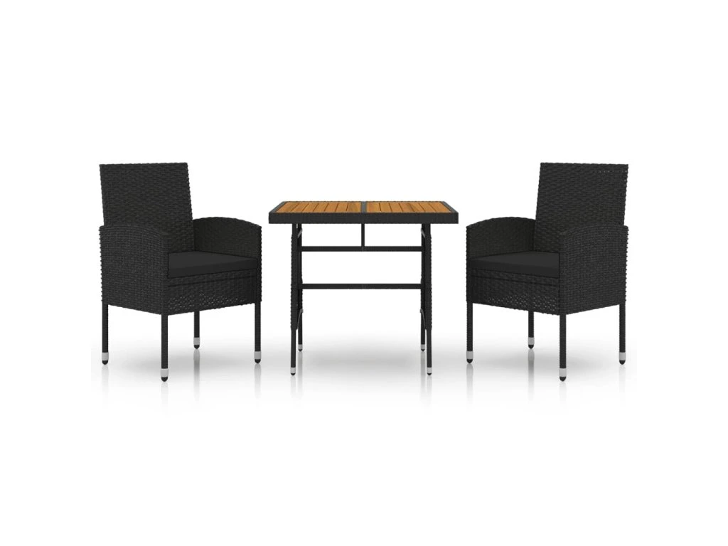 3dílný zahradní jídelní set polyratan černý 3120089