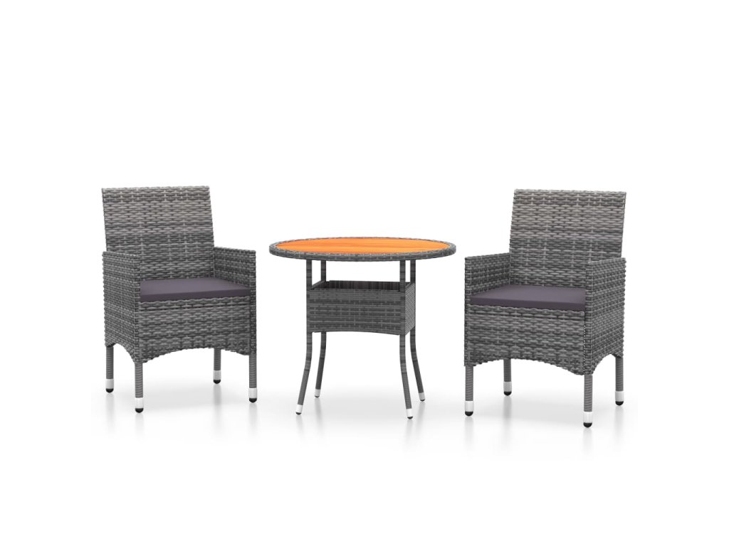 3dílný zahradní jídelní set polyratan šedý 3058483