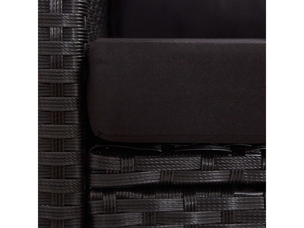 - Materiál: PE (polyethylenový) ratan, práškově lakovaná ocel, PS deska, textil (100% polyester)