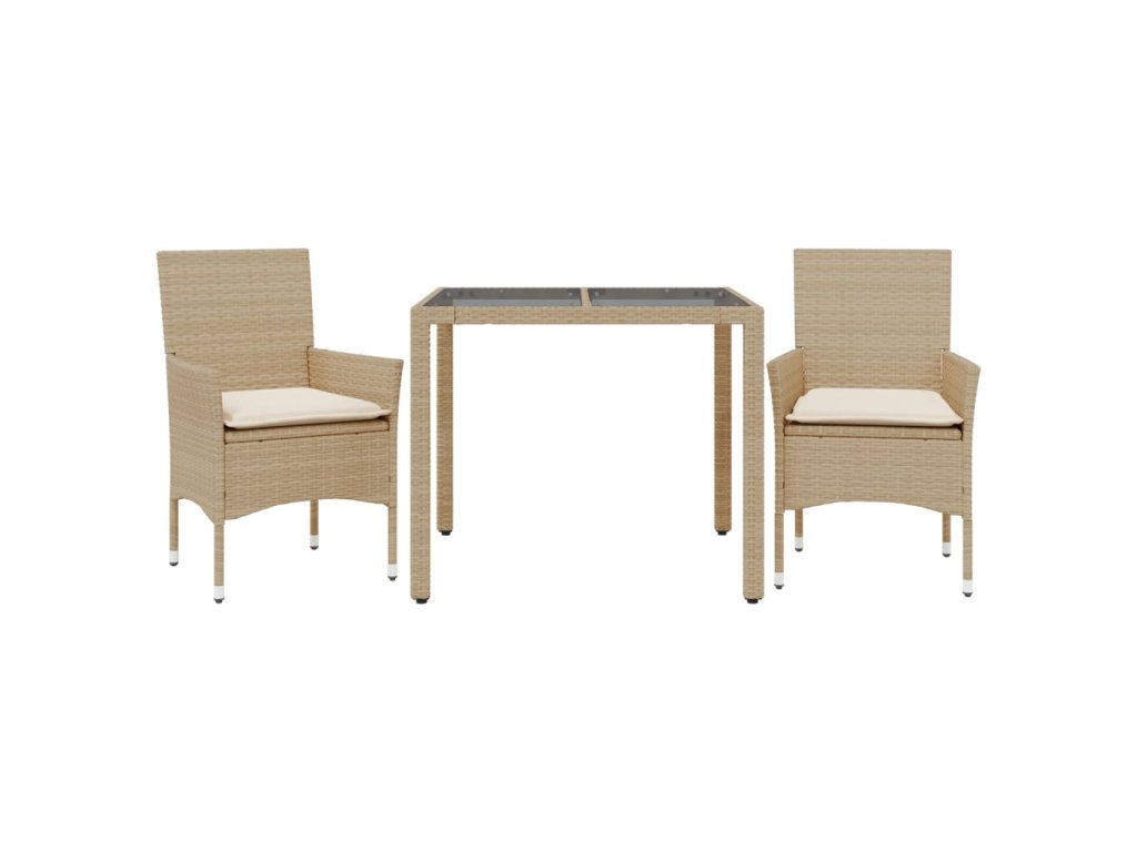 3dílný zahradní jídelní set s poduškami béžový polyratan a sklo 3278567