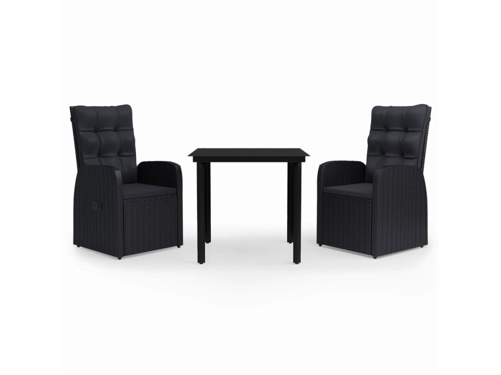 3dílný zahradní jídelní set s poduškami černý 3099479