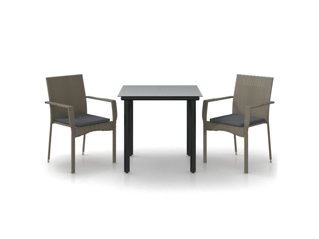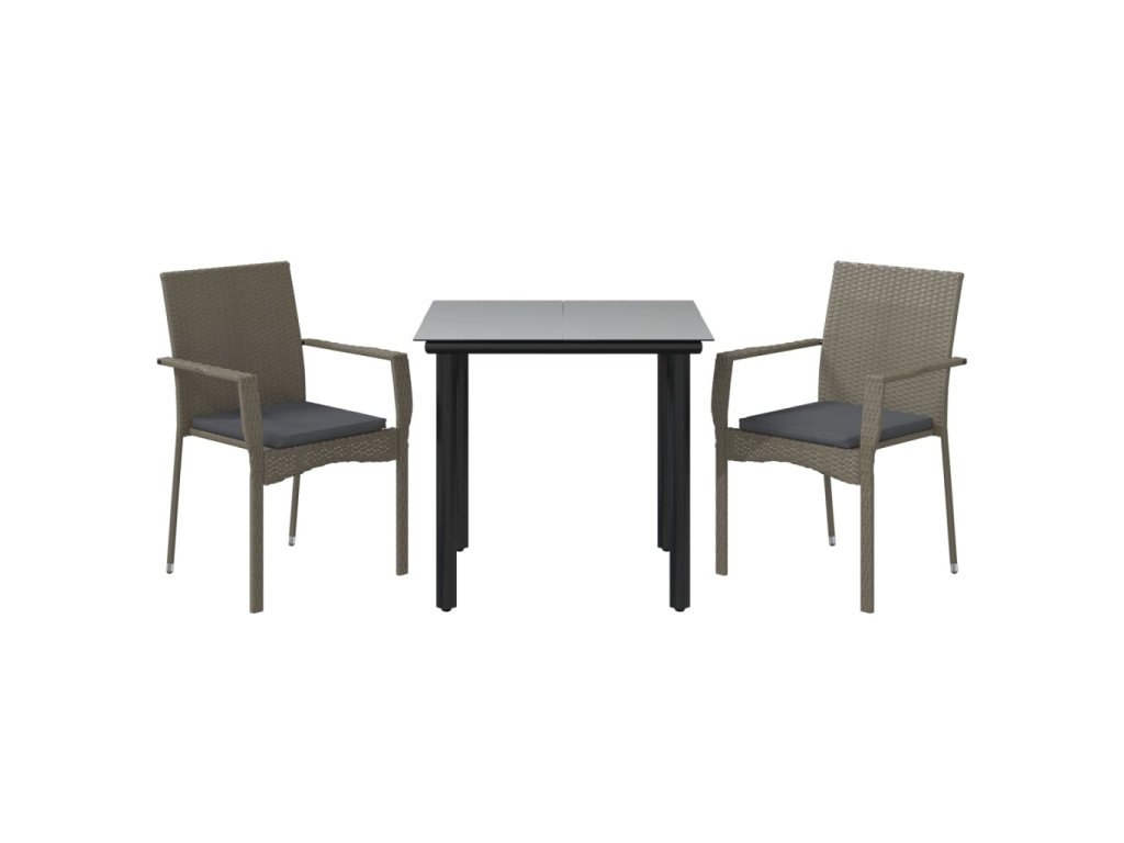 3dílný zahradní jídelní set s poduškami černý a šedý polyratan 3185137