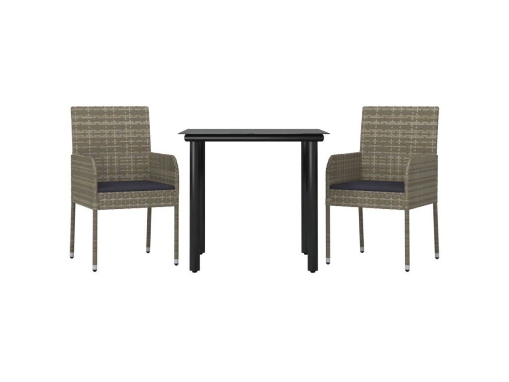3dílný zahradní jídelní set s poduškami černý a šedý polyratan 3185161