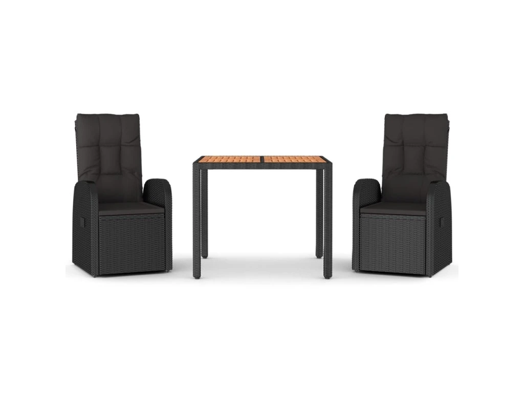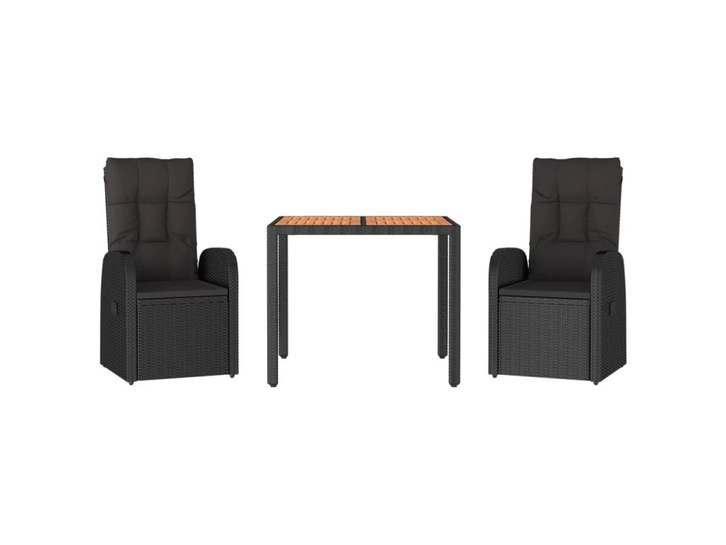 3dílný zahradní jídelní set s poduškami černý polyratan 3157597