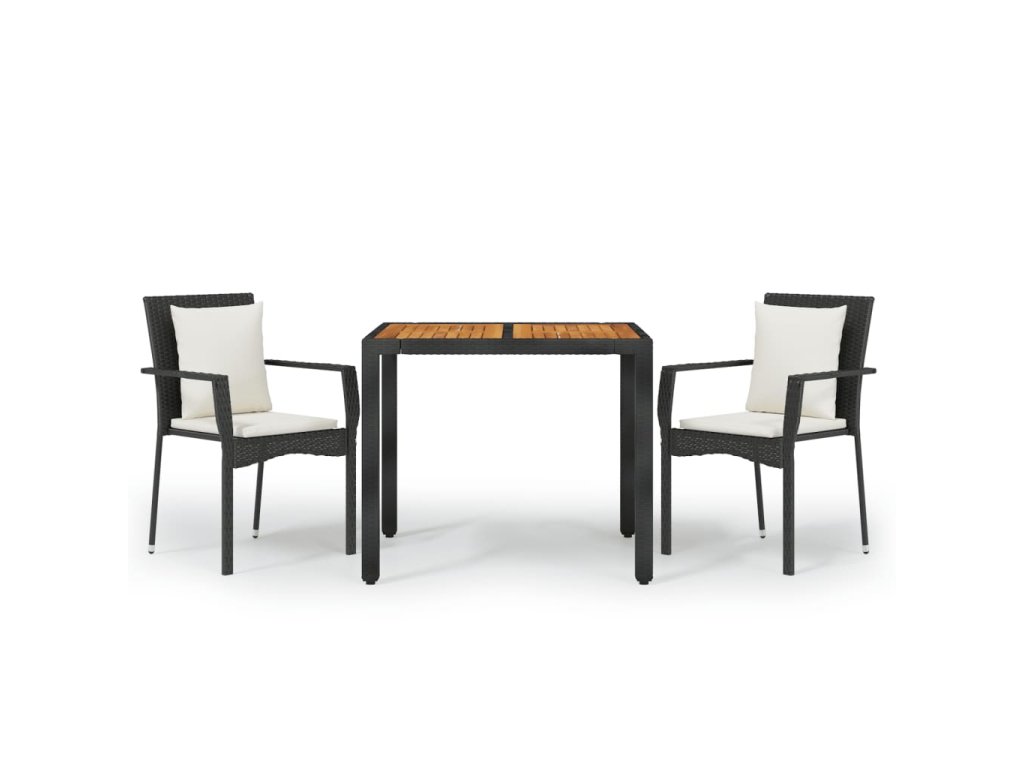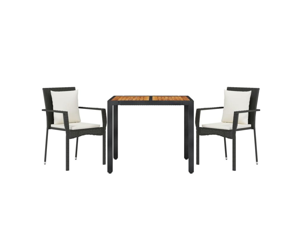 3dílný zahradní jídelní set s poduškami černý polyratan 3157963