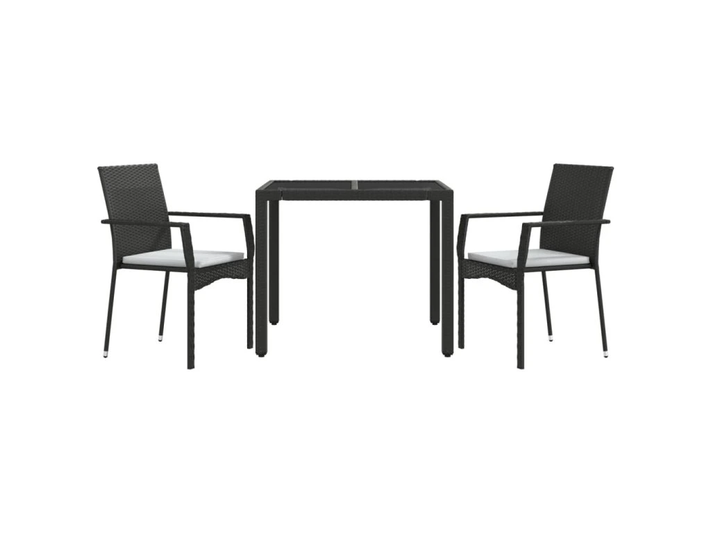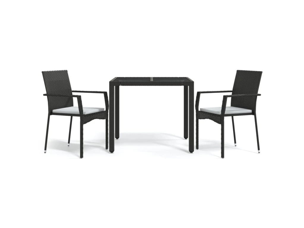 3dílný zahradní jídelní set s poduškami černý polyratan 3184975