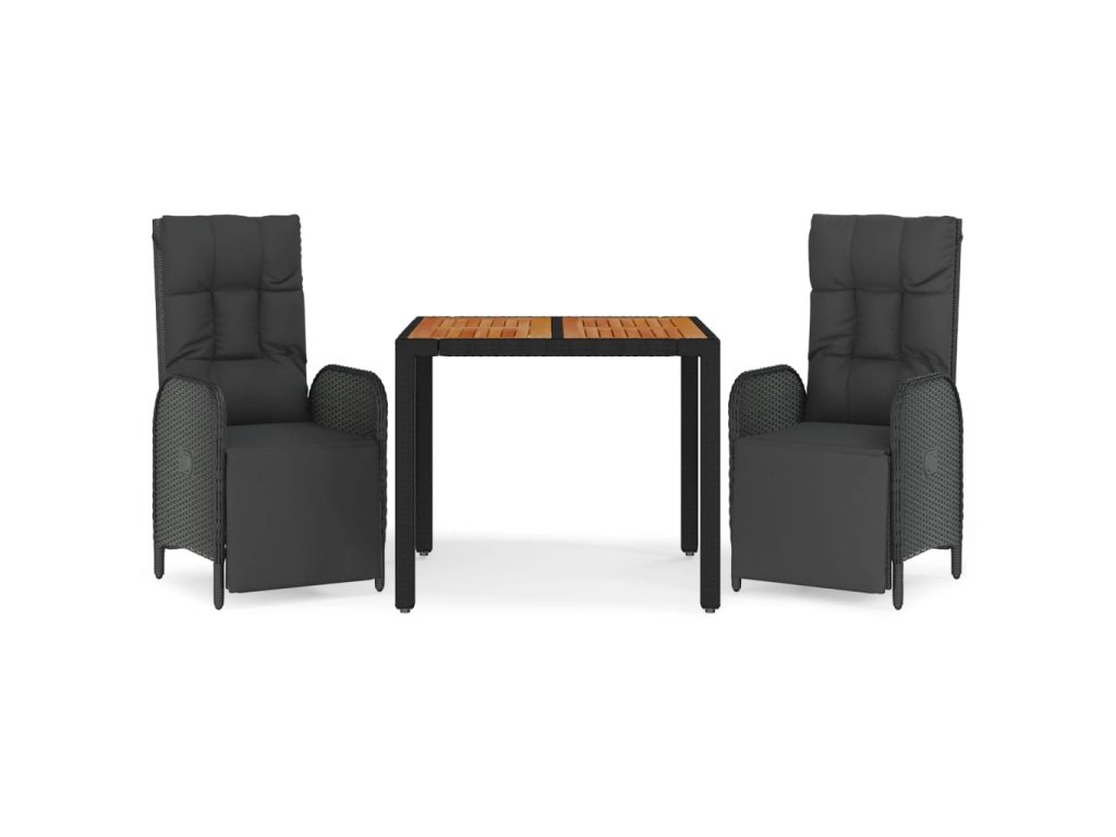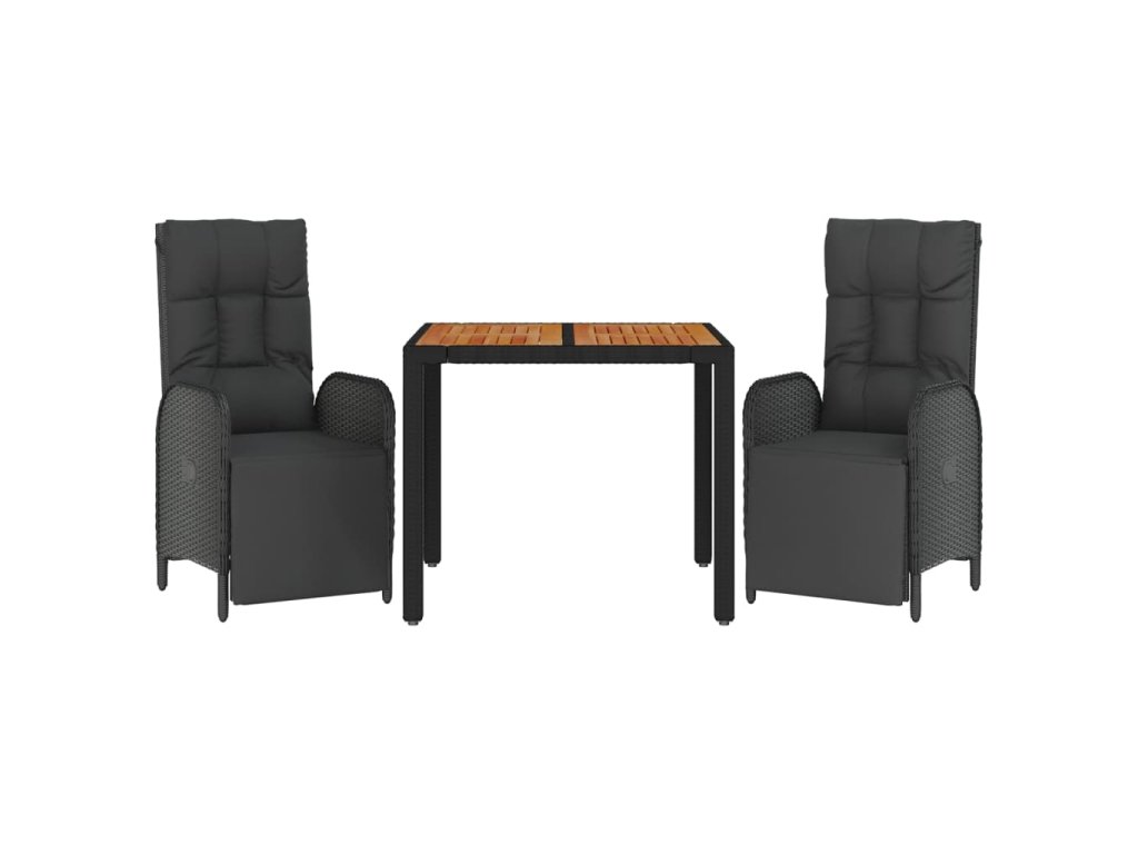 3dílný zahradní jídelní set s poduškami černý polyratan 3185074