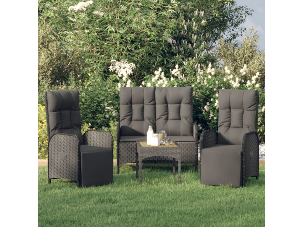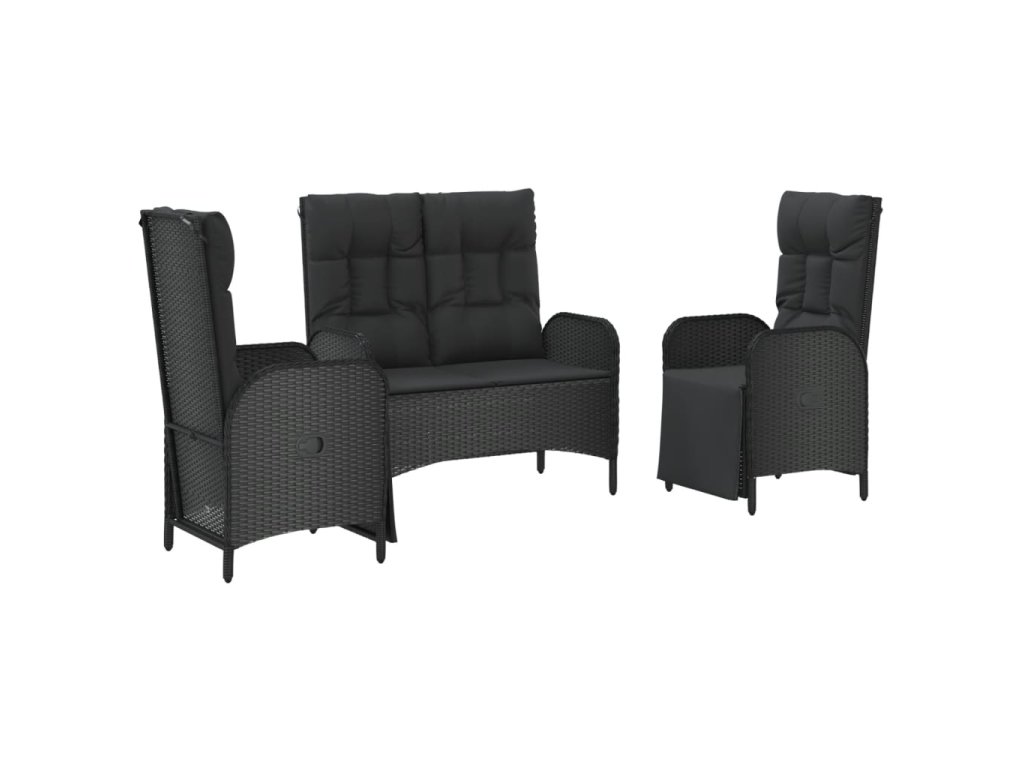 3dílný zahradní jídelní set s poduškami černý polyratan 3185094