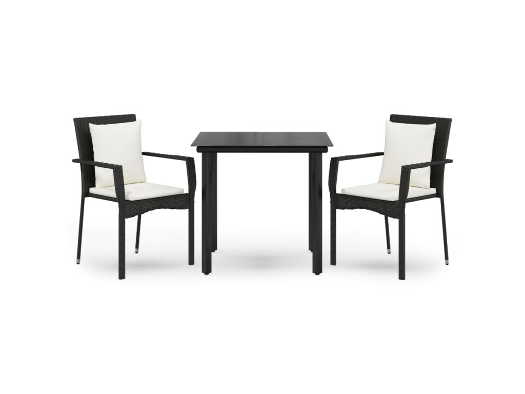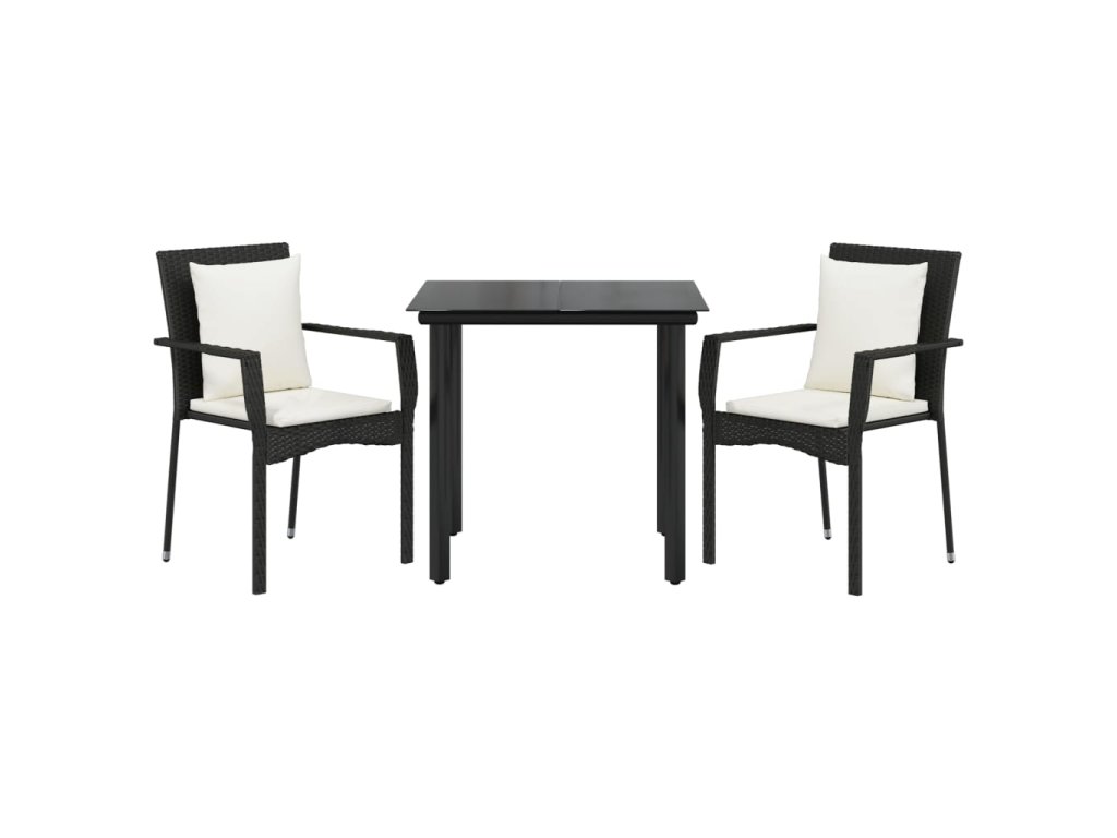 3dílný zahradní jídelní set s poduškami černý polyratan 3185107