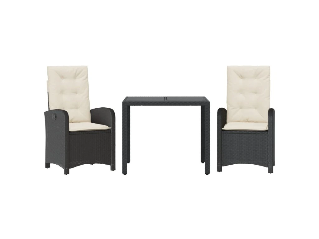 3dílný zahradní jídelní set s poduškami černý polyratan 3212194
