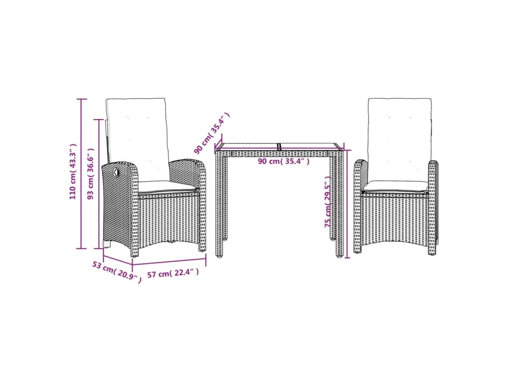 - Rozměry při poloze vsedě: 57 x 58,5 x 93 cm (Š x H x V)