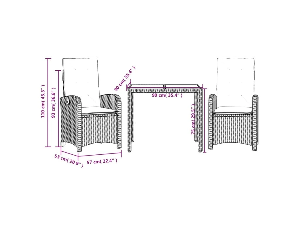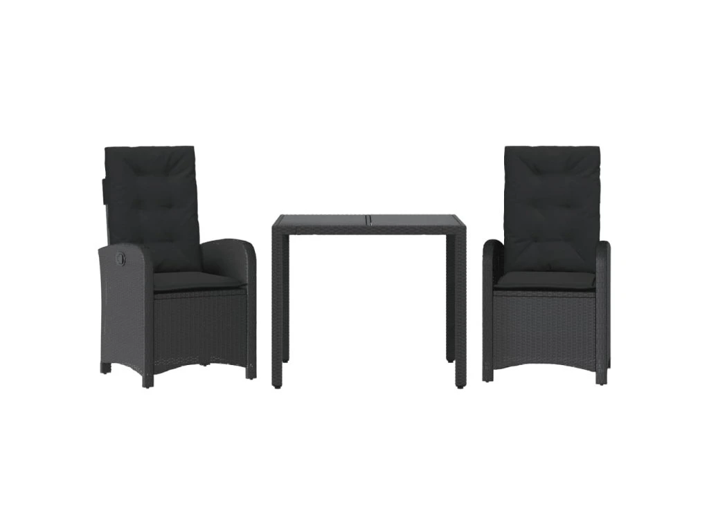 3dílný zahradní jídelní set s poduškami černý polyratan 3212203