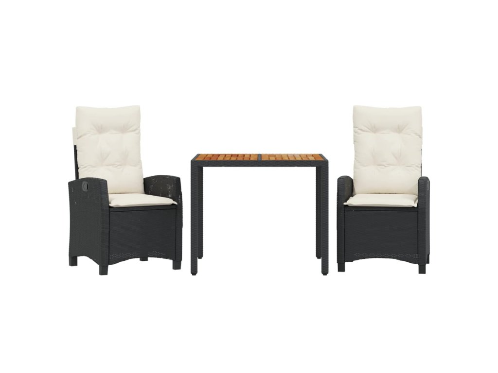 3dílný zahradní jídelní set s poduškami černý polyratan 3212653