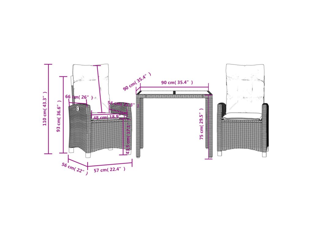 - Rozměry při poloze vsedě: 57 x 66 x 93 cm (Š x H x V)