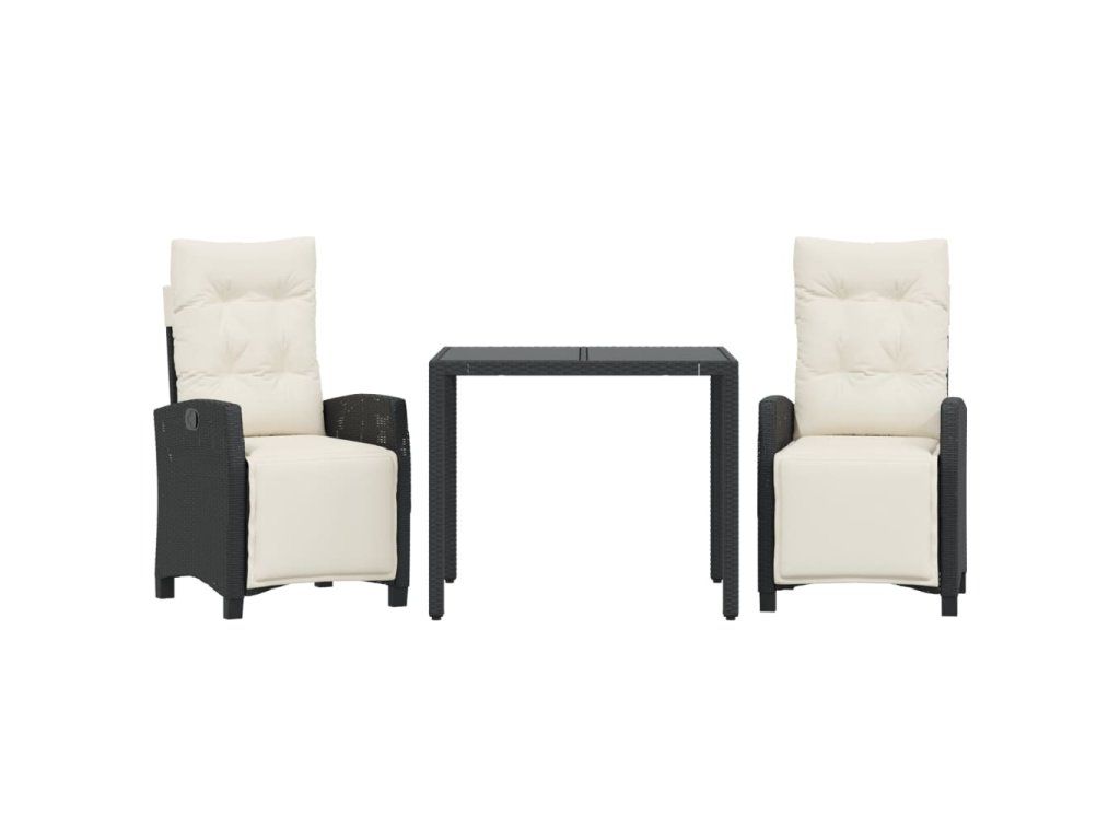 3dílný zahradní jídelní set s poduškami černý polyratan 3212882