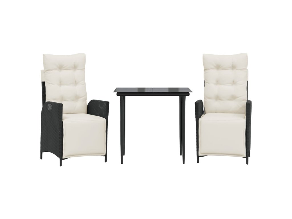 3dílný zahradní jídelní set s poduškami černý polyratan 3213378