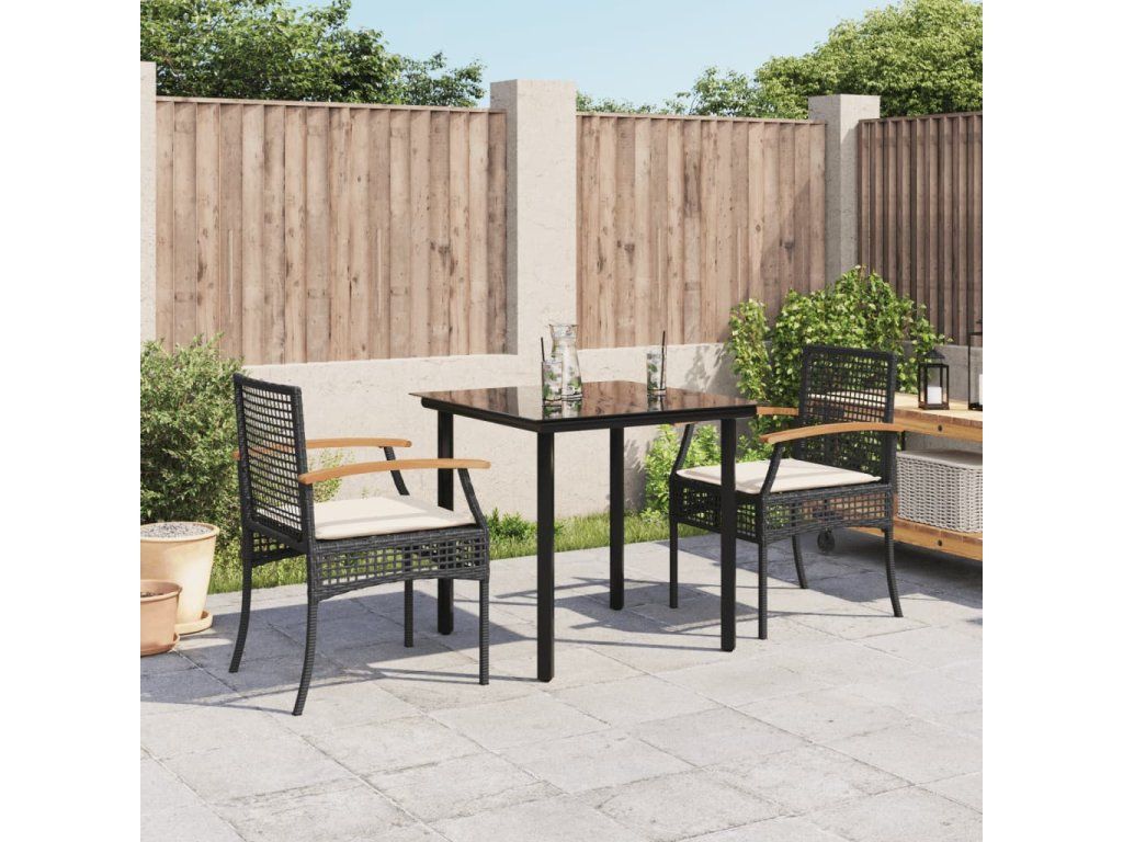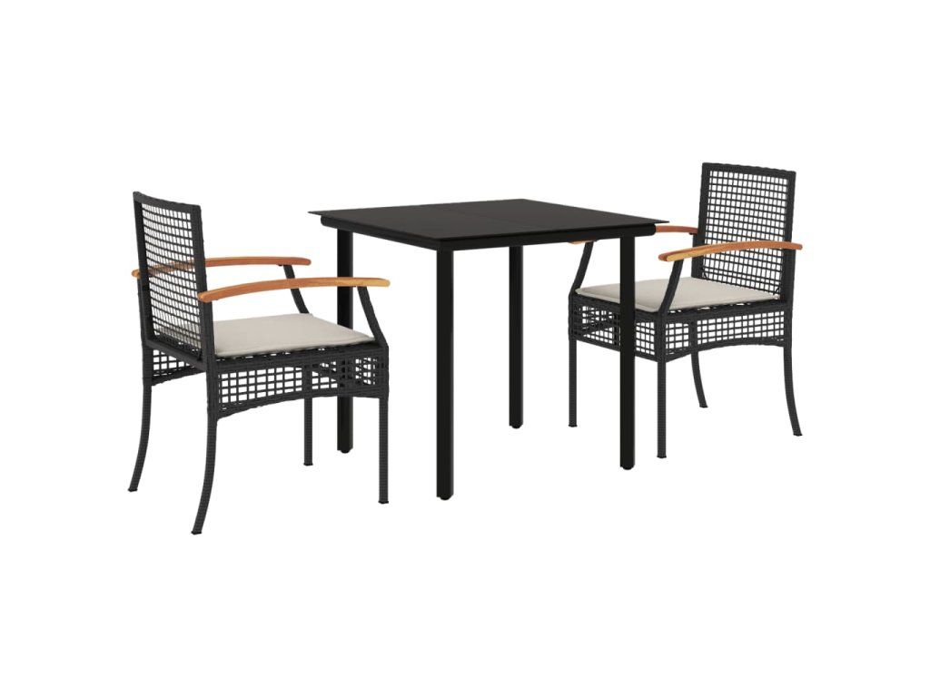3dílný zahradní jídelní set s poduškami černý polyratan 3213603