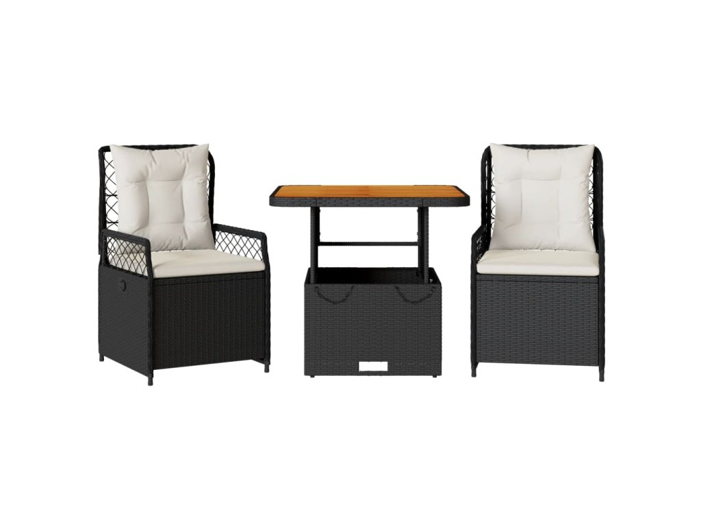 3dílný zahradní jídelní set s poduškami černý polyratan 3262910