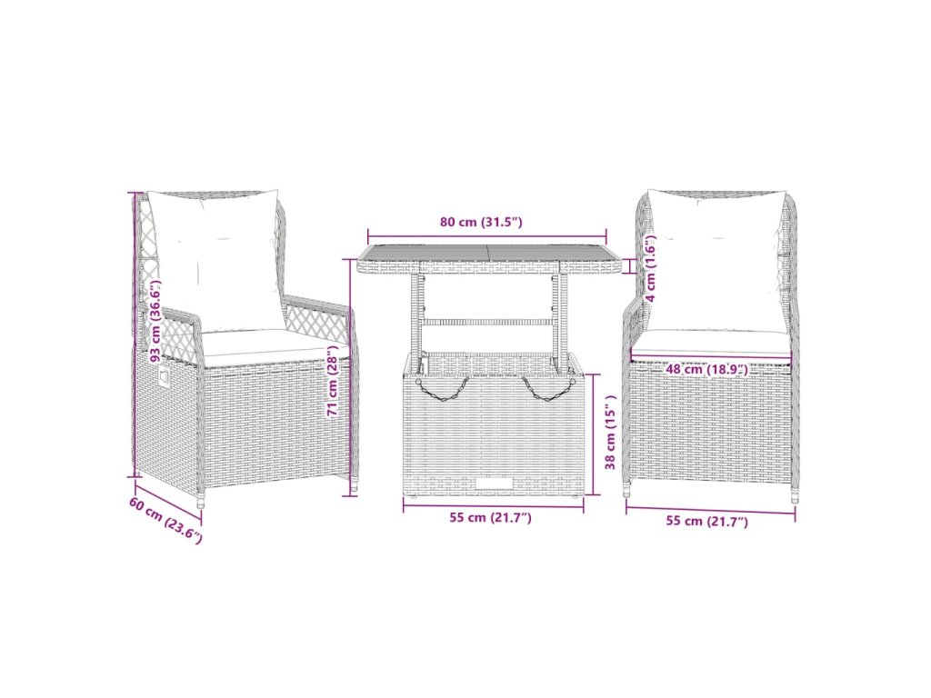 - Rozměry při poloze vsedě: 55 x 60 x 93 cm (Š x H x V)
