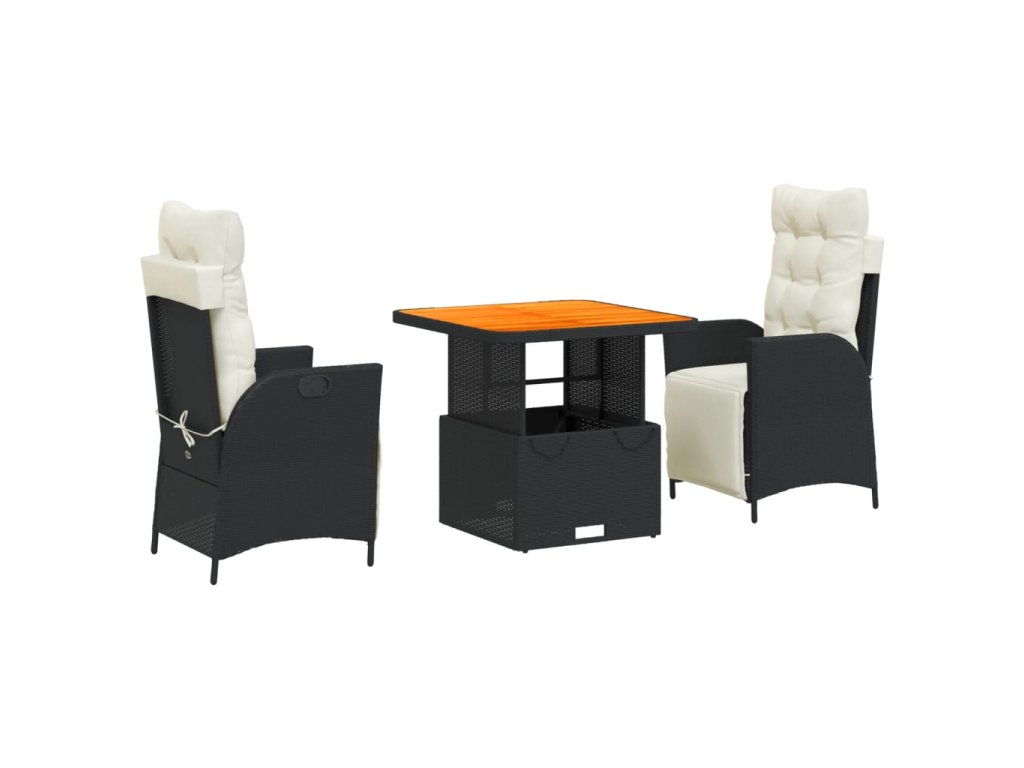 3dílný zahradní jídelní set s poduškami černý polyratan 3277435