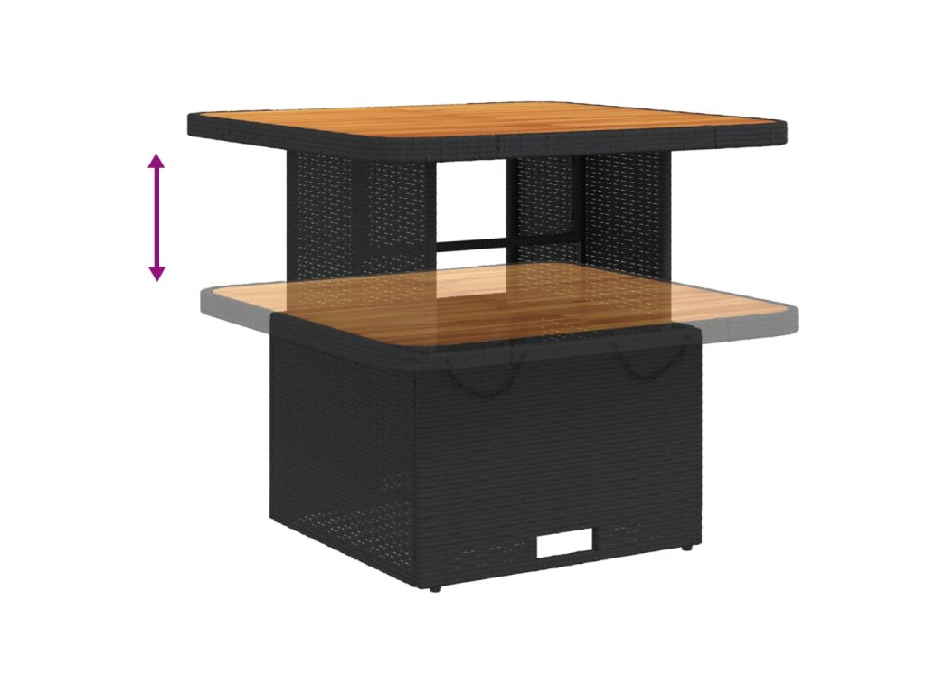 - Nastavitelná deska stolu: Stolní desku lze zvednout tak, aby stůl byl vyšší, takže jej můžete přeměnit z konferenčního stolku na jídelní. Skvěle se hodí pro návštěvy nebo pro stolování venku.