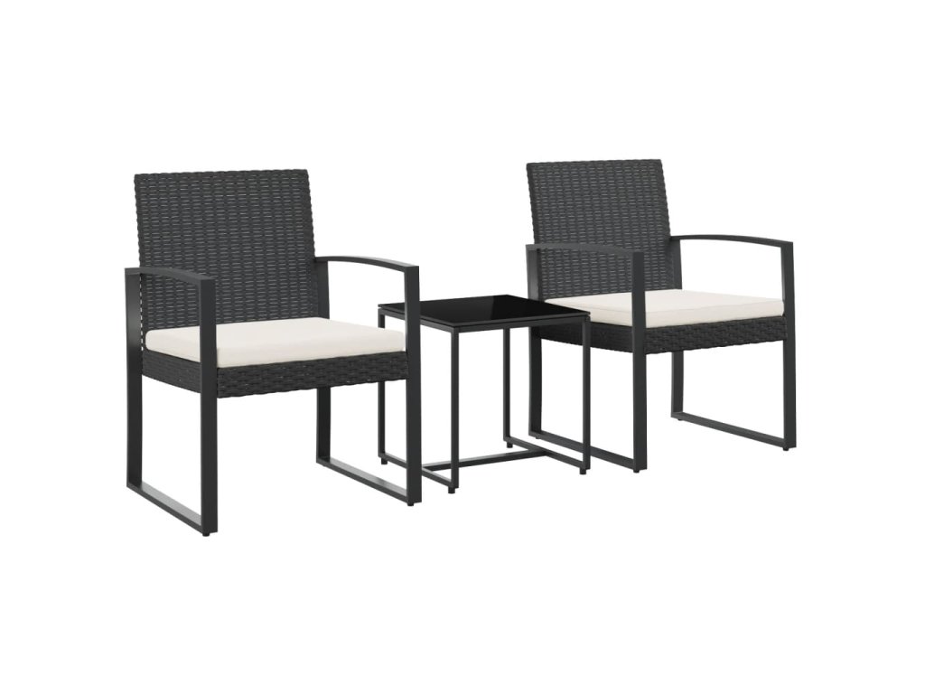 3dílný zahradní jídelní set s poduškami černý PP ratan 360206