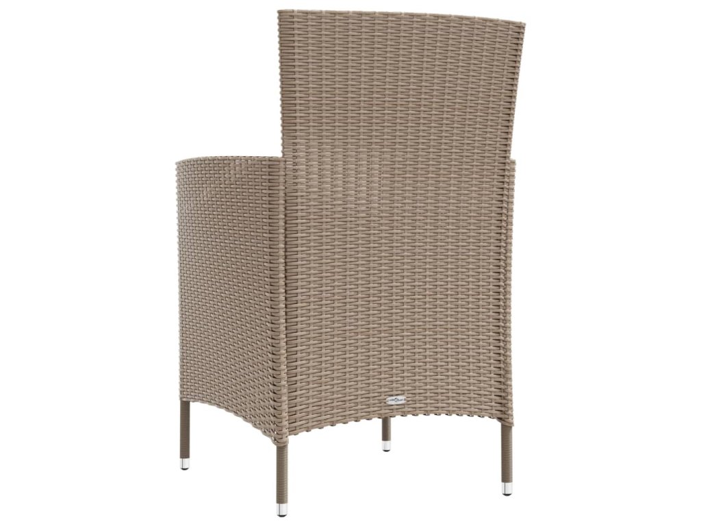 Zahradní jídelní set má ocelový rám s práškovým nástřikem, který stolu i židlím zaručuje stabilitu a dlouhou životnost. Set venkovního nábytku je zhotoven z PE ratanu odolného vůči povětrnostním vlivům a vodě, takže se snadno čistí. Silné odnímatelné podušky na sedáky zvyšují pohodlí při sezení a dají se jednoduše oprat.