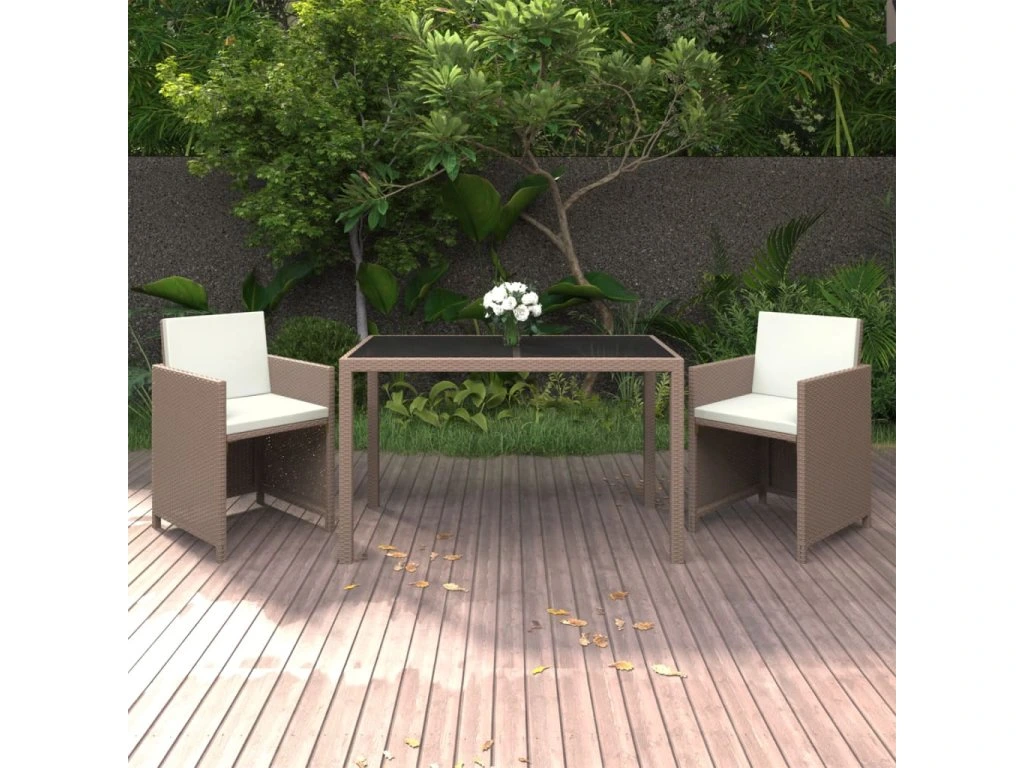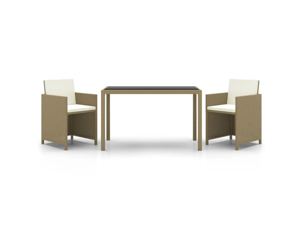3dílný zahradní jídelní set s poduškami polyratan béžový 3095494