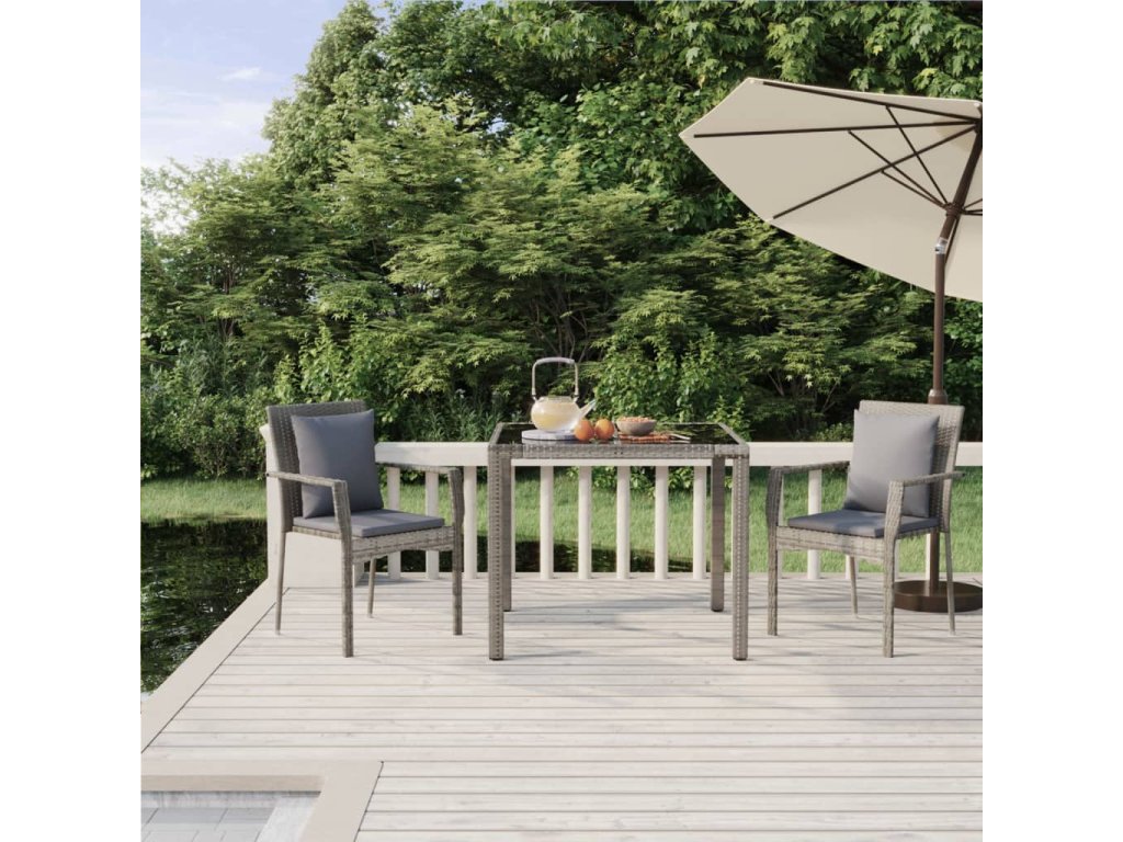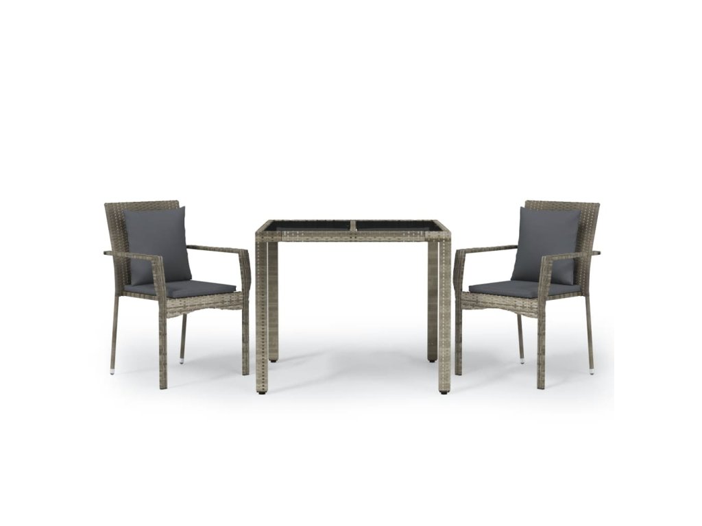 3dílný zahradní jídelní set s poduškami šedý polyratan 3157957